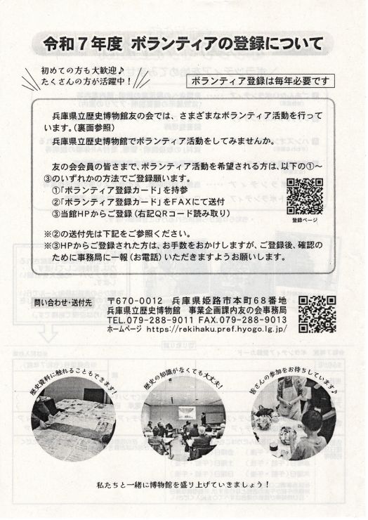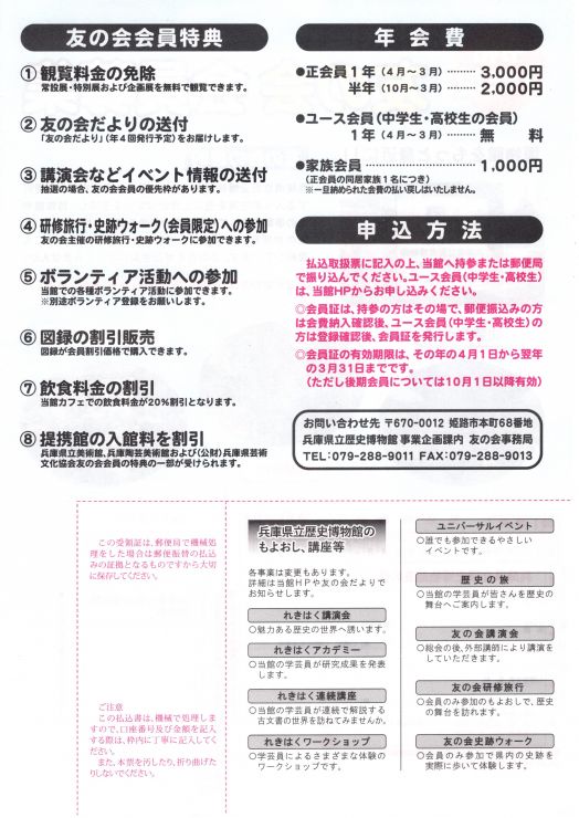 兵庫県立歴史博物館 友の会 会員募集中! 2026/03/31 taniguchi 10月1日より、「兵庫県立歴史博物館友の会」の後期会員募集中です。さまざまな特典もございますので、今秋より歴史に触れてみられはいかがでしょうか。