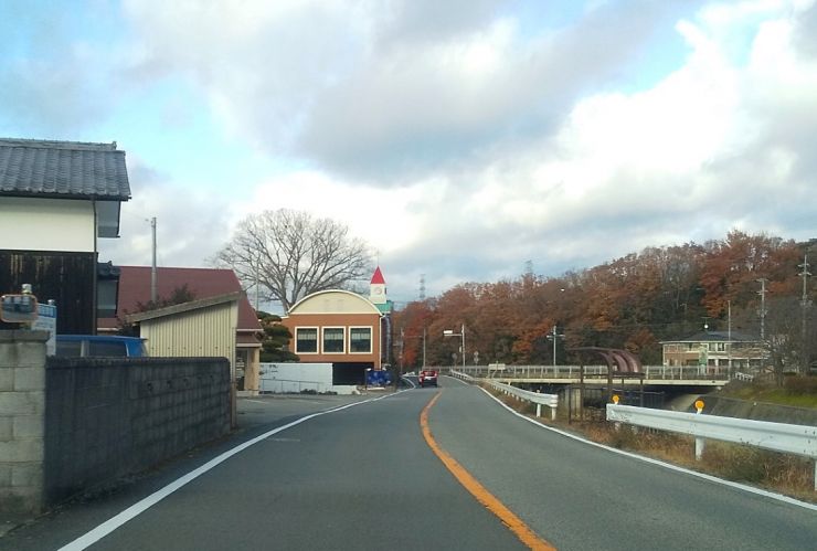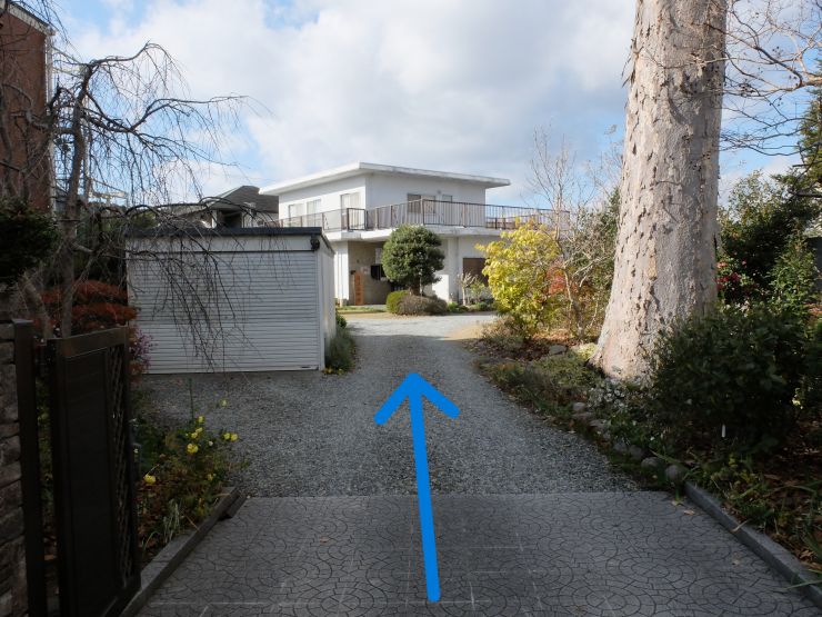 有馬方面から県道82号線でお越しの場合は、新明治橋交差点の直前、信号の停止線をこえてすぐ左側に、ケヤキのほうへ入る道がございます。左折して奥へお進みください。