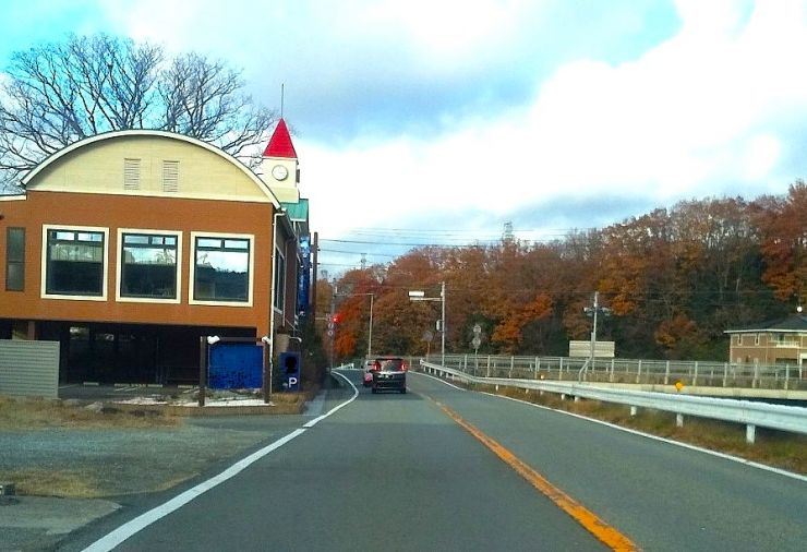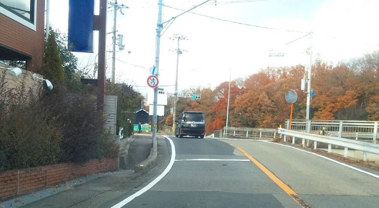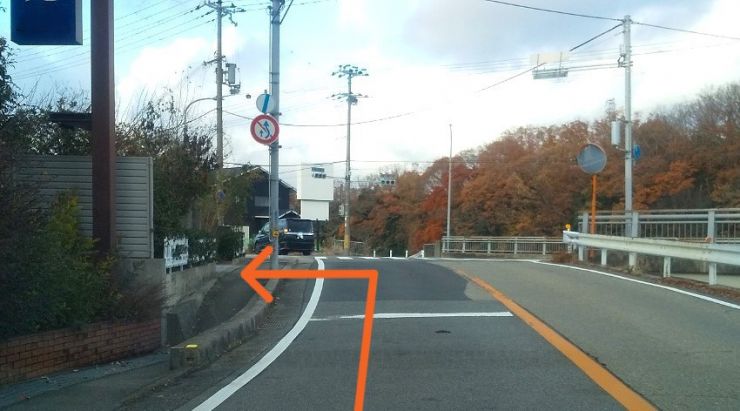 横断歩道の手前、追越禁止の標識を左折頂きます